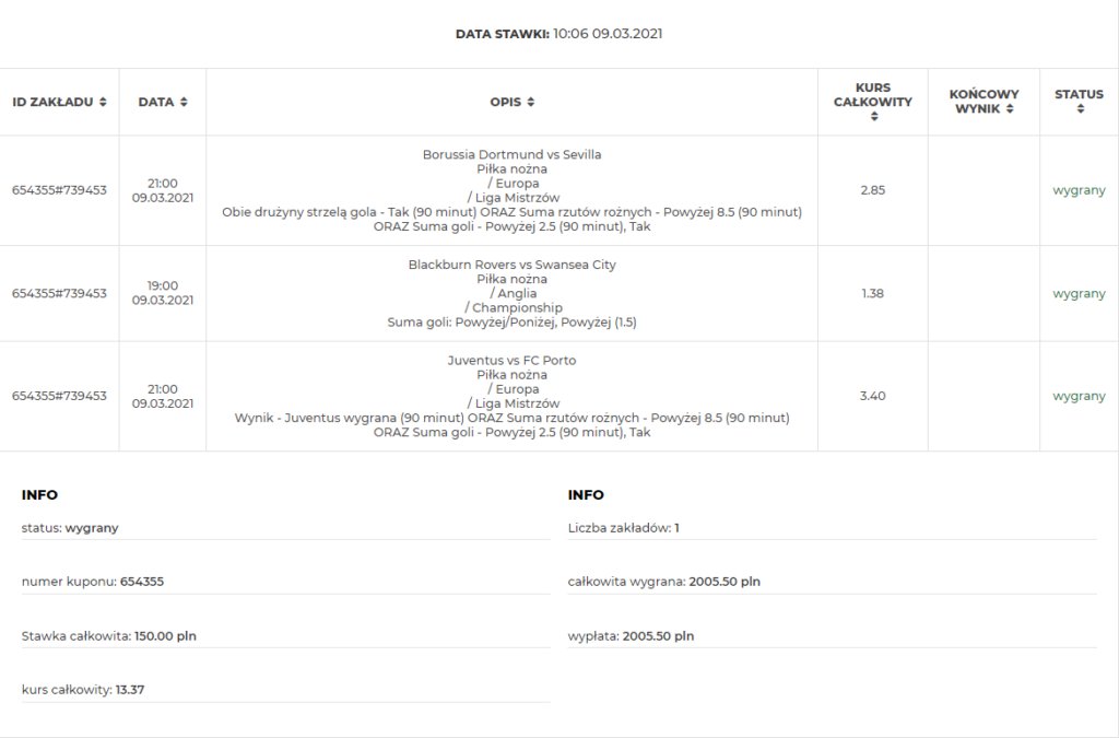 Czy ktoś wygrał grając kuponem stworzonym przez BetBuilder?