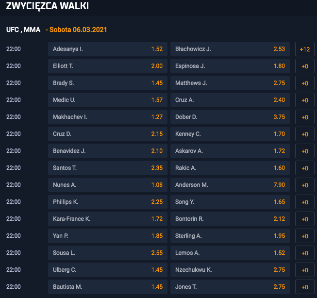 | Bukmacher | Błachowicz [1] | Adesanya [2] |