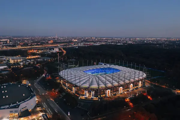 Volksparkstadion w Hamburgu został otwarty w 1953 roku, ale przeszedł znaczną modernizację w 2000 roku, kiedy to został przekształcony w obiekt bardziej odpowiedni dla piłki nożnej. Stadion gościł mecze na trzech wielkich turniejach: Mistrzostwach Świata FIFA w 1974 i 2006 roku oraz Euro ’88. W 2010 roku odbył się na nim także finał Ligi Europy, w którym Atlético Madryt pokonało Fulham 2:1 po dogrywce. Arena ta była również miejscem organizacji wydarzeń bokserskich i koncertów. Jest własnością Hamburger SV i przez długi czas na stadionie znajdował się zegar, który liczył czas, jaki klub spędził w 1. Bundeslidze. Jednak zegar ten został odłożony do magazynu w 2018 roku po pierwszym spadku HSV w historii klubu.
