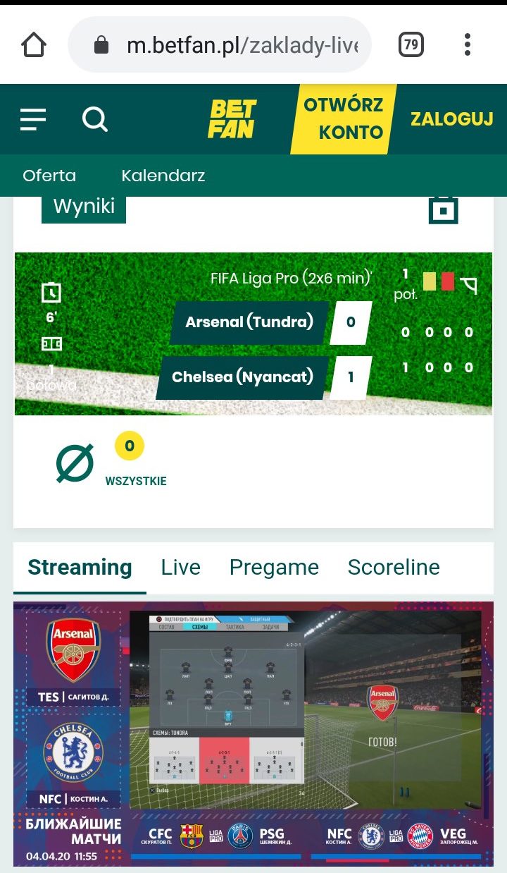 Streaming jest dostępny na stronie mobilnej bukmachera BETFAN, w zakładce LIVE. Oprócz śledzenia na żywo wydarzeń, można je także obstawiać w ramach zakładów na żywo.