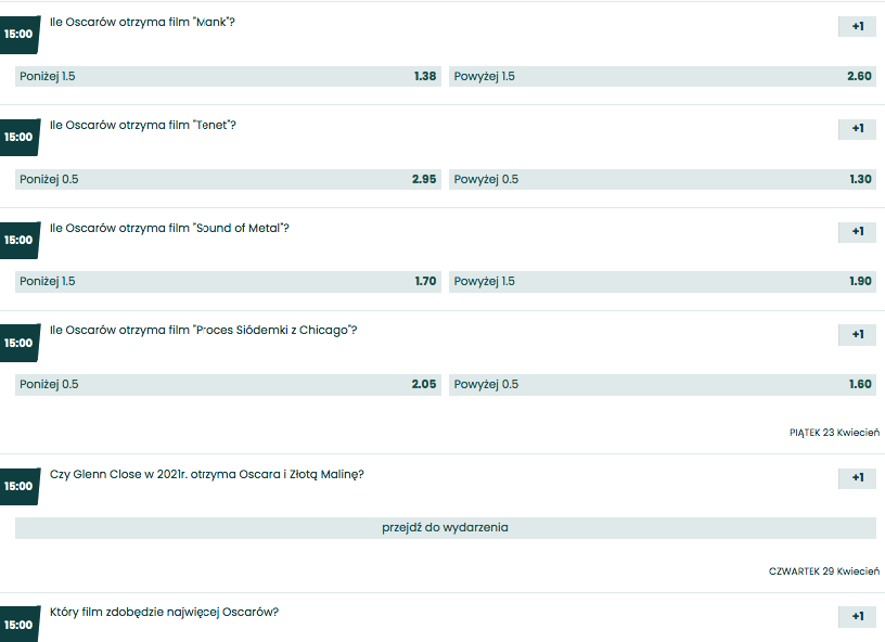 Wolski ma jednak niewielkie szanse na zwycięstwo w oczach bukmacherów, którzy oferują wysokie przeliczniki na jego zwycięstwo. U bukmachera LV BET jest to nawet kurs 13.00. Dużo większe szanse na statuetkę w tej kategorii według LV BET mają “Nomadland” – kurs 1,50 i “Mank” – kurs 2,85.