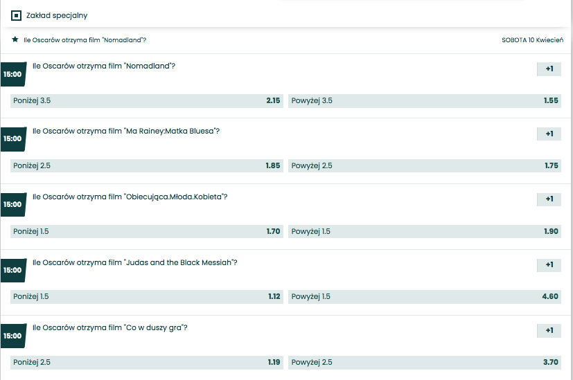 BETFAN, którego specjalizacją są zakłady specjalne i tym razem przygotował coś ekstra na galę rozdania nagród Akademi Filmowej. Poniżej dostępna lista zakładów specjalnych na Oscary 2021: