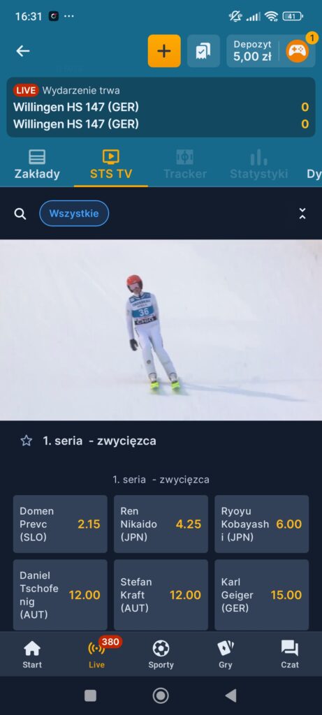 Skoki narciarskie to jedna z tych dyscyplin, w których różnice między ofertami bukmacherów szybko wychodzą na wierzch. Podczas testów kilku platform w trakcie zawodów zauważyłem, że STS stawia nie tylko na szeroką ofertę zakładów, ale również na kontekst – w tym dostęp do transmisji Pucharu Świata w STS TV oraz rozbudowane rynki przedkonkursowe i live.