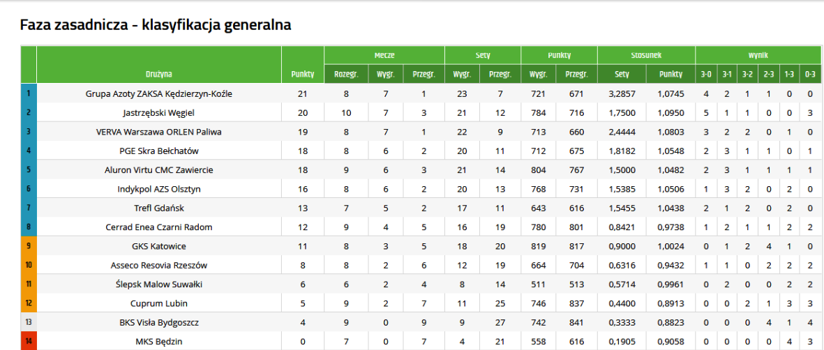 - Tabela PlusLigi po 8 kolejkach