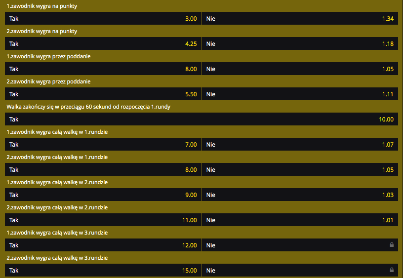 Za każdą postawioną złotówkę w Fortunie, która jest głównym sponsorem gali z serii KSW, można wygrać 1.60. Natomiast w przypadku zwycięstwa Polaka, 1 PLN może przynieść 2.34 PLN.